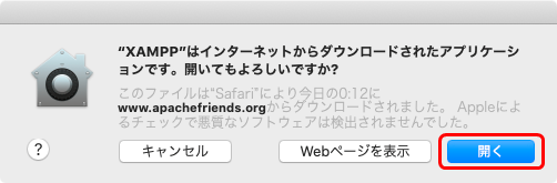 初回実行時は確認メッセージが表示されるので[開く]をクリック